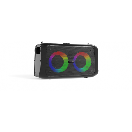 Ηχείο Bluetooth- Καραόκε, ισχύς 20W, Ραδιόφωνο FM, Επαναφορτιζόμενη μπαταρία με αυτονομία 3 ώρες, Συνδέσεις: USB, Micro SD, Aux-In, MIC-In, Disco LED φωτισμό, Yποδοχή Σύνδεσης με κινητό ή tablet. Διαθέτει ιμάντα για εύκολη μεταφορά.